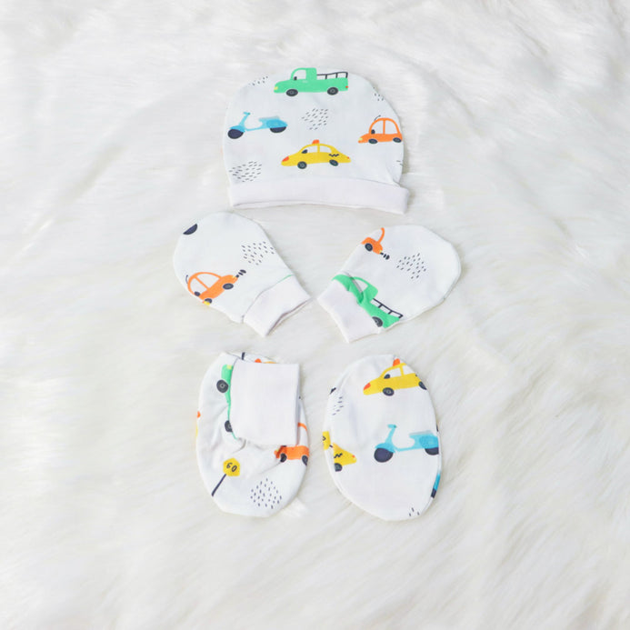 Beep Beep - Cotton Cap, Mittens & Booties Set
