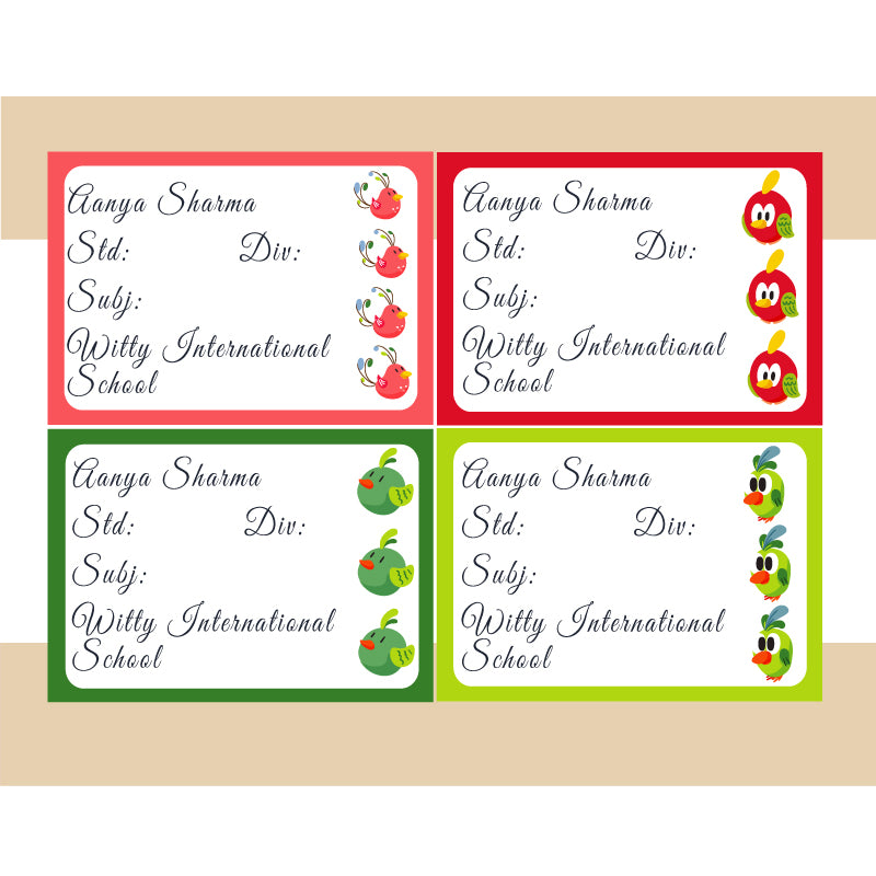 Kids school book labels pack available in a array of colours and styles, they'll stop the kiddos dueling over mixed up or misplaced books.