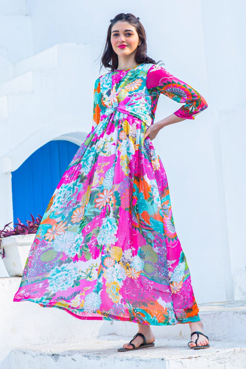 You can never go wrong with Momzjoy's knot dress that can be worn for any occasion. This dress has a great fit during and after pregnancy and flatters the bump with gathers. Made in crepe, you can wear this dress in all seasons. This is perfect for maternity photo-shoots.