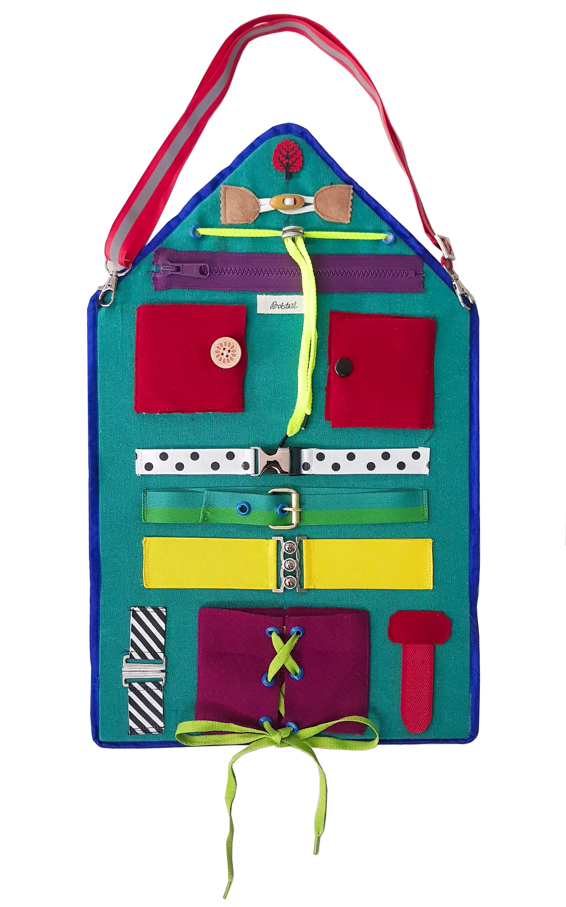 Practice getting ready with this fun interactive board! Your child will learn everything from zipping, buttoning, and even tying laces! Make getting dressed up a fun activity your child will be wanting to do all on their own. Promotes: Fine motor skills Life Skills Independent Play Self Help Why Choose Our Dress-up Busy Board?Portable Our bag-like design makes it easy for your child to carry the bag themselves. Bring it along on a long drive or when you go to a restaurant, the board is sure to keep them entertained! Promote Independence Zipping, buttoning, texture, lacing, and buckling are just a few of the skills you can learn from this board, making not only getting ready easy, but tasks such as buckling into the car seat or packing up a book bag!
