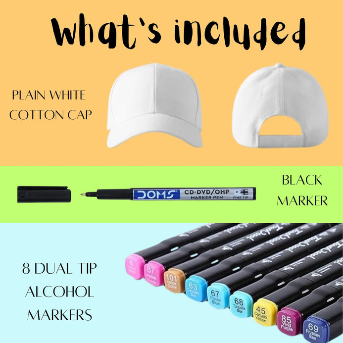 Unleash your creativity and make a statement with our Creative Cap Painting Kit! This all-inclusive set provides everything you need to design and personalize your very own unique cap.