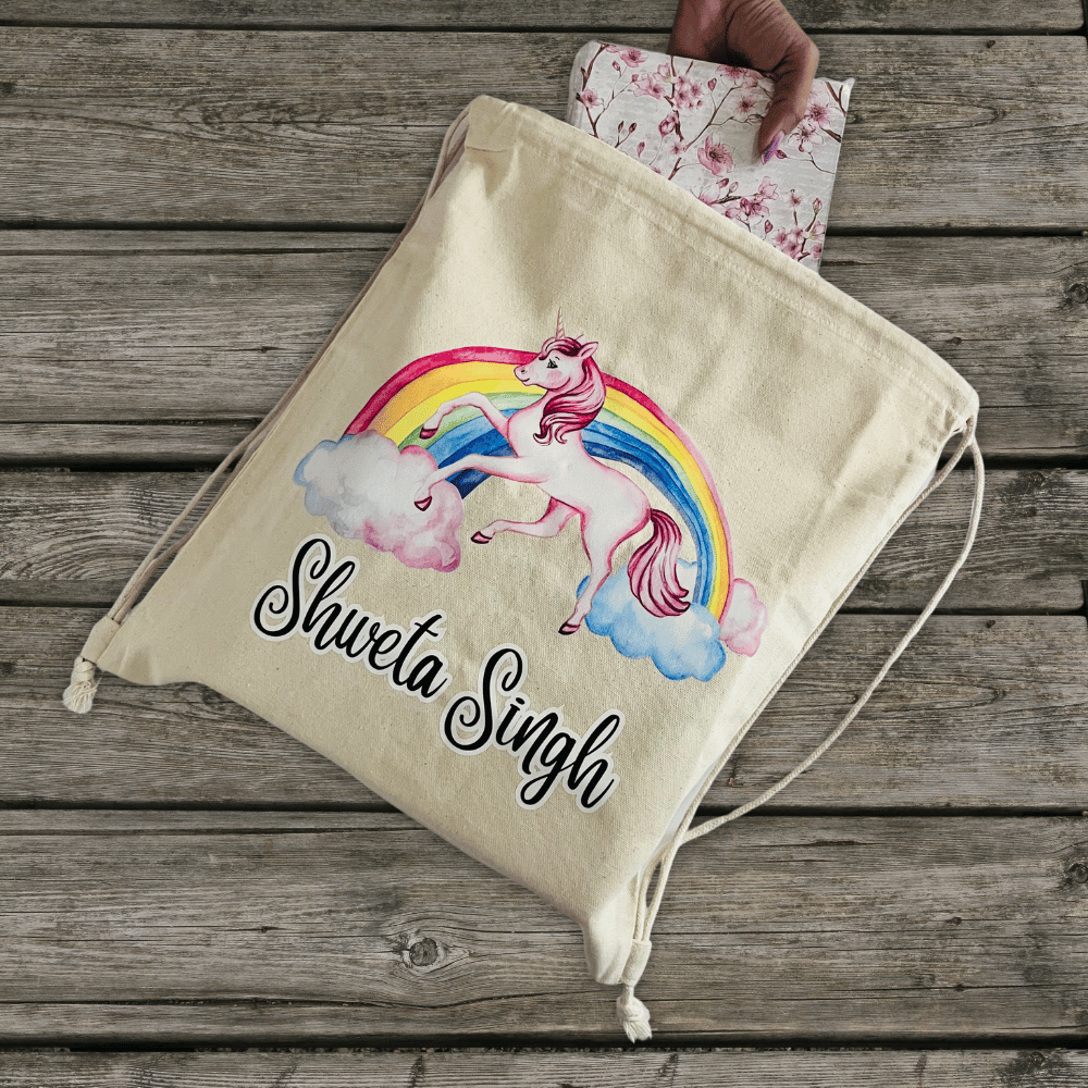 Personalised Drawstring Bag | Rainbow & Unicorn