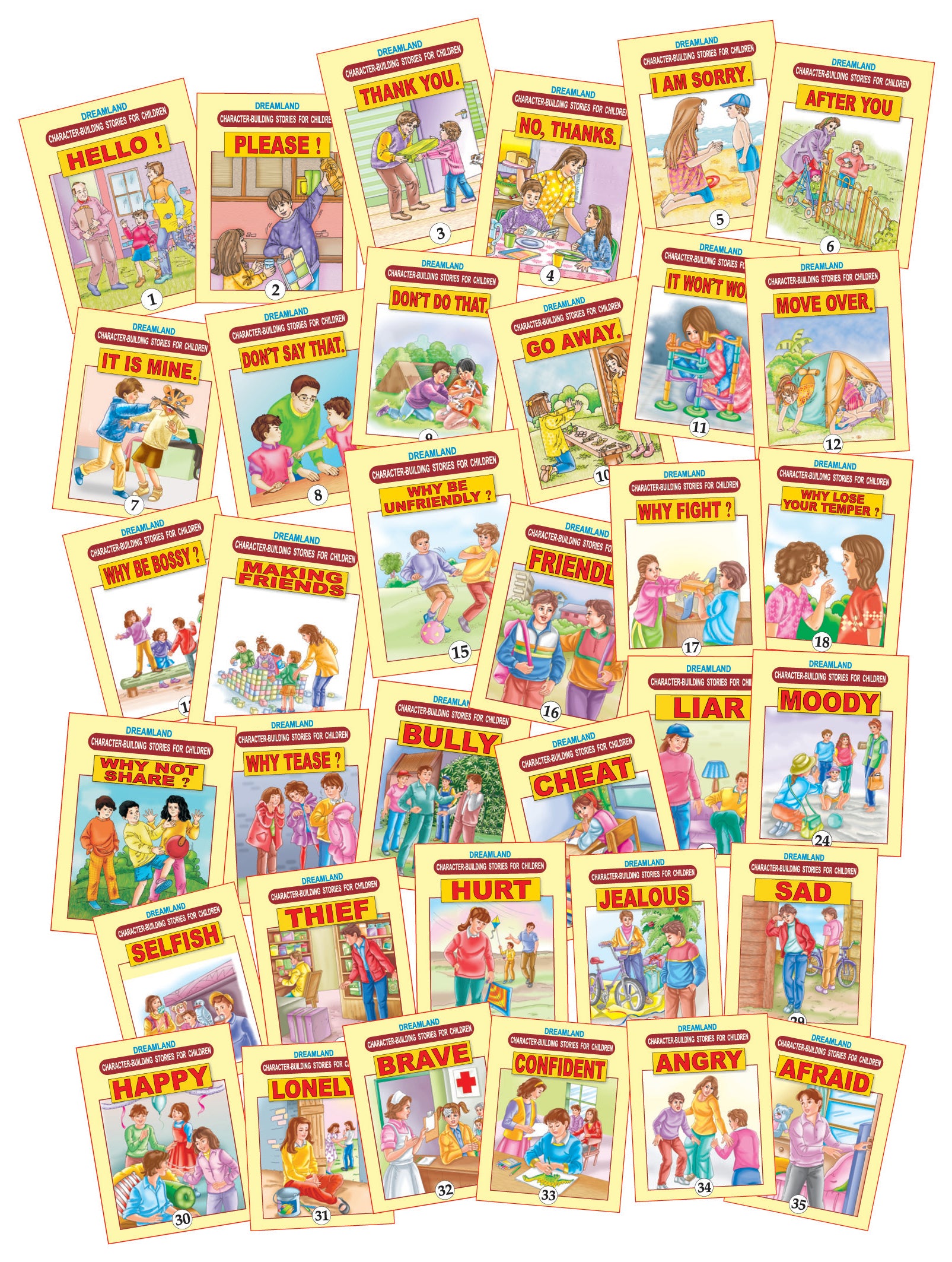 Character education is an integral part of education. ‘Character Building Stories’ this pack of 35 books contains two or three stories in each book. These stories teach children that they should behave will all in a polite manner. These stories make it easy to teach moral values in a meaningful way. • Ideal for ages 6-8 • 35 books of 24 pages each • Includes moral lessons • Colourful presentation • Nice cover design Designed and compiled keeping young kids in view lessons learnt through these interesting stories will definitely help children become confident citizens. Nice illustrations add beauty to each story that also guides young learners on the path of righteousness. It is an excellent resource for character-conscious kids.