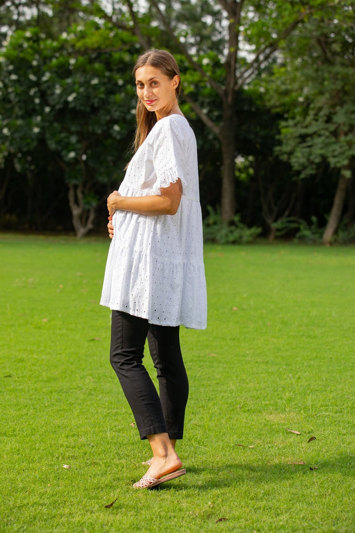 Feel gorgeous in our shirt top that will make a stylish addition to your maternity wardrobe. Made in soft cotton, this top has a relaxed design that has an attractive empire line shape and volume. Front buttons provide easy feeding access. Designed to fit throughout pregnancy, style it with black trousers at work or dress it down with skinny jeans for an easy off-duty look.