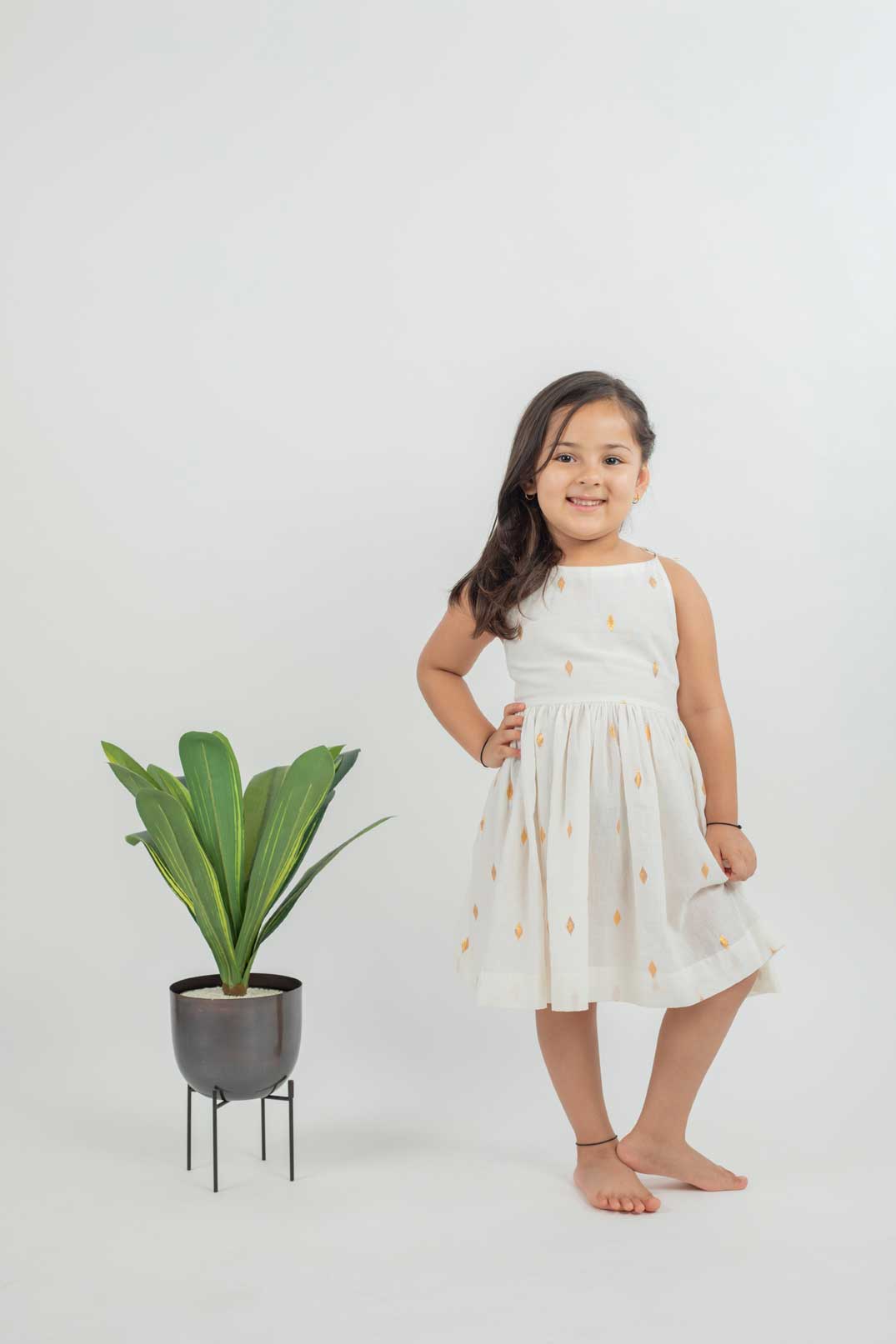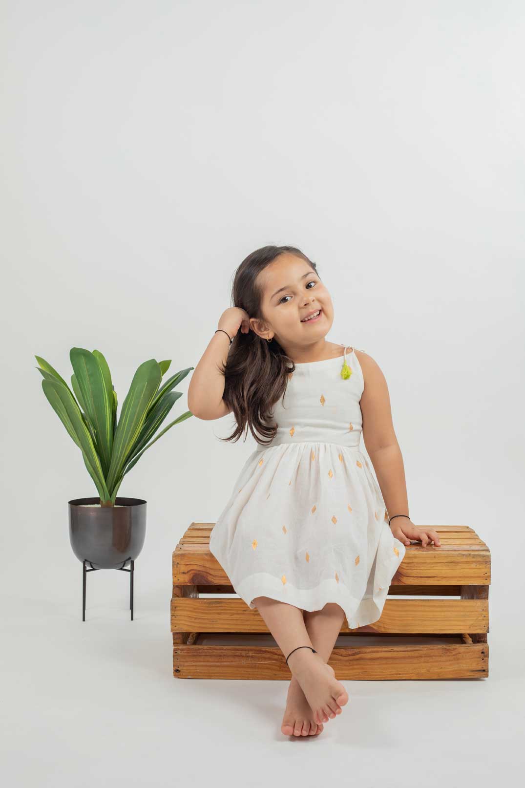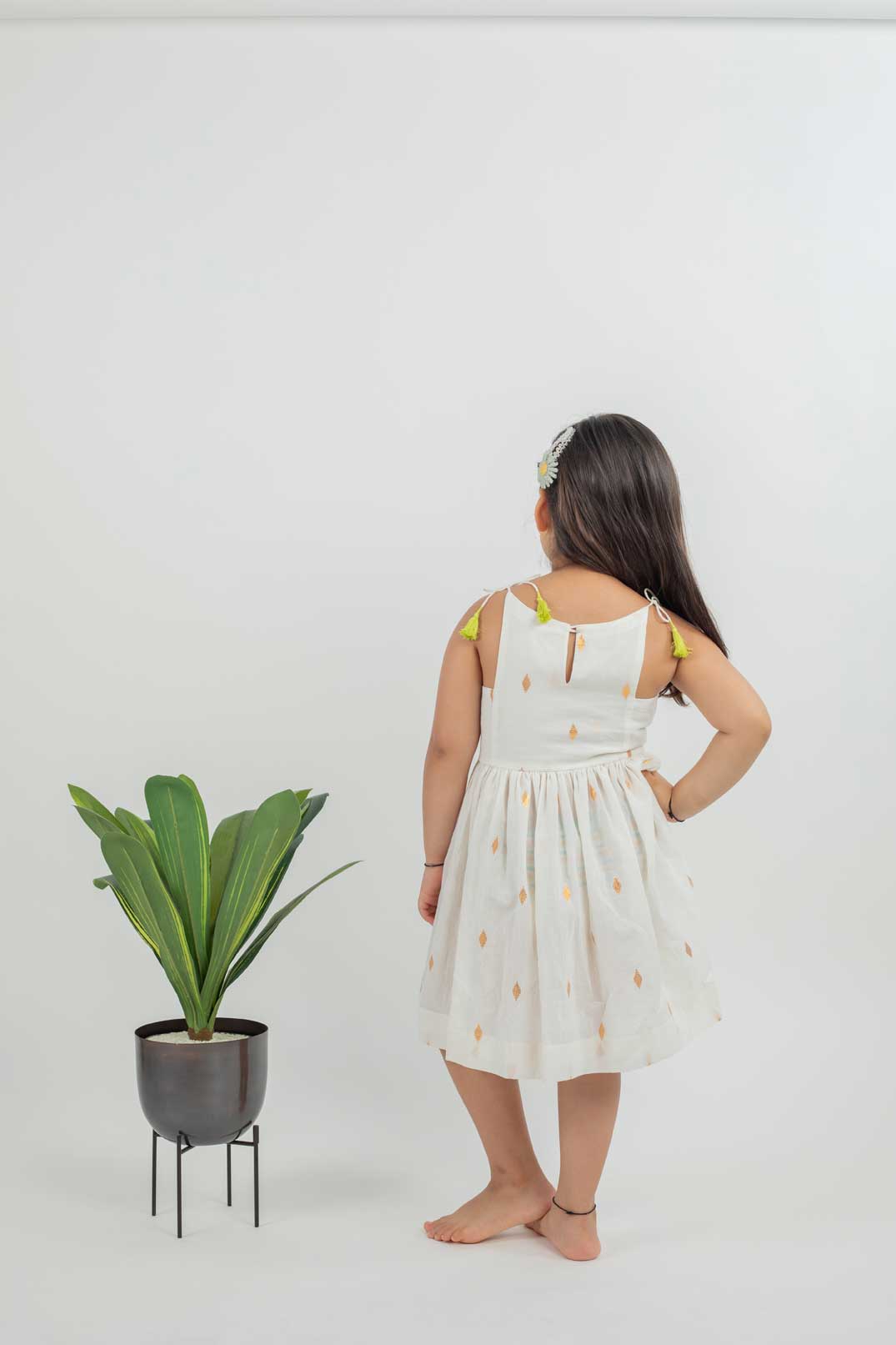 Cotton Airy Dress With Zari Bootas Woven And Lime Green Tassel