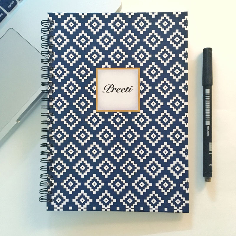 Personalised (Rewritable) Notebook | Blue Square Abstract