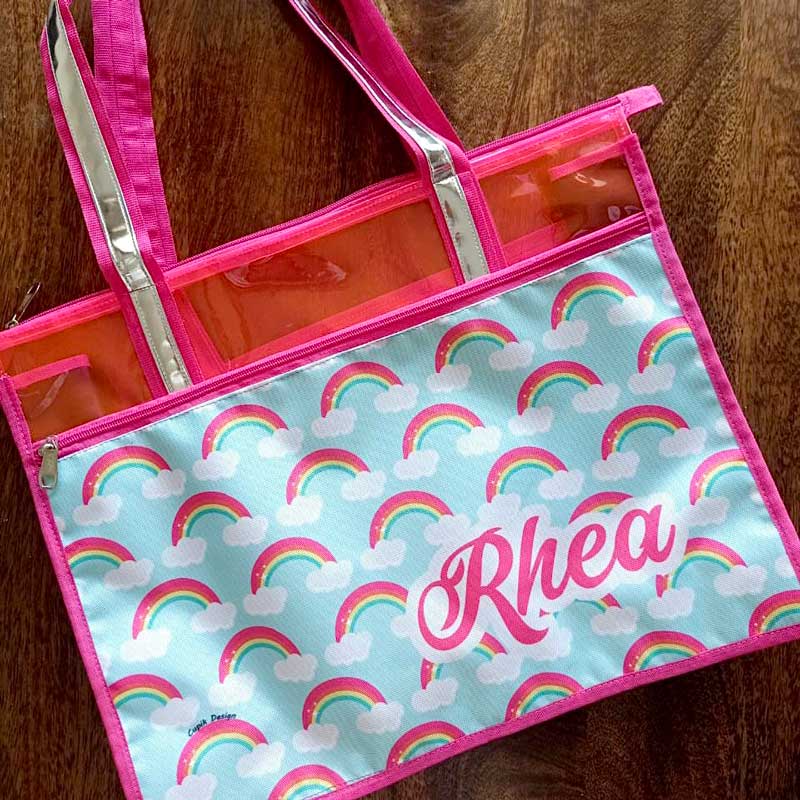 Tote bags for kids in bright colours and gorgeous prints. Perfect for the playground, the beach, swim class or the art centre. Comes with a zipper to keep your belongings secure. Also has a smaller section in the front to store wet swimwear, wet art material or anything else. Popular for return gifts too...just club with our gorgeous matching sketch books and crayon boxes and you have a memorable giveaway for your special event.