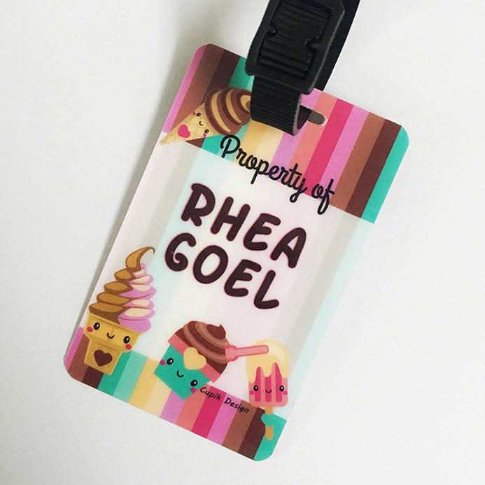 The cool way to personalise school bags or travel bags. Identical printing on both sides. The waterproof material makes them durable and sturdy. Comes with a cool loop belt to tie onto your bag securely.