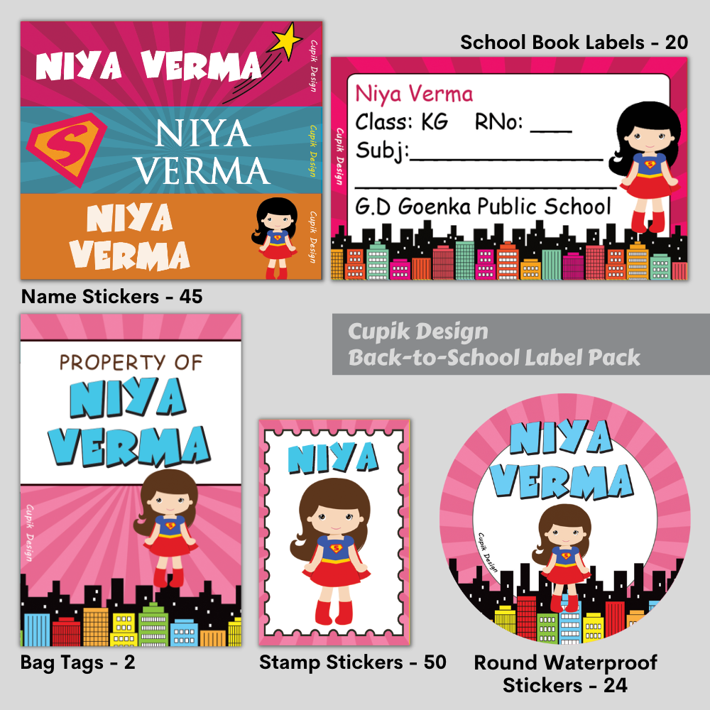 • 45 name stickers ,abel pens, pencils, stationery kits and other flat surfaces.