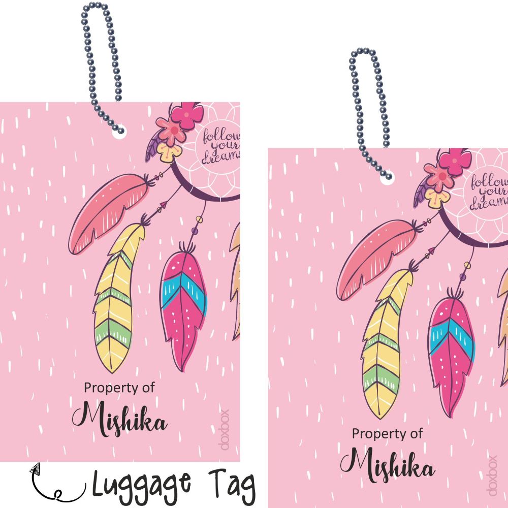 Luggage/bag tags are fun ways to keep your kids belongings safe and identifiable. These tags are laminated and comes with a chain to be attached to any bag/luggage you wish to.