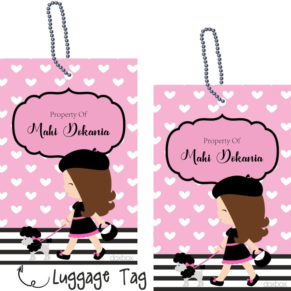 Luggage/bag tags are fun ways to keep your kids belongings safe and identifiable. These tags are laminated and comes with a chain to be attached to any bag/luggage you wish to.