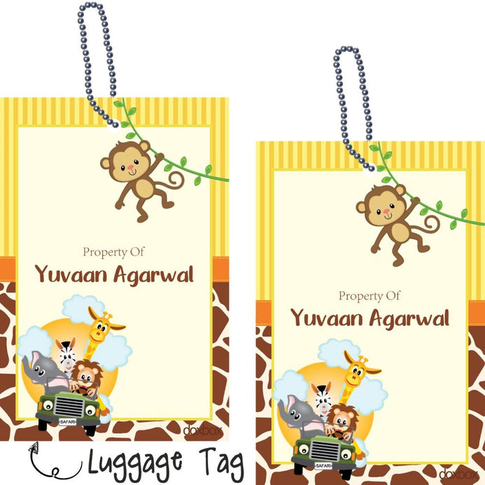 Luggage/bag tags are fun ways to keep your kids belongings safe and identifiable. These tags are laminated and comes with a chain to be attached to any bag/luggage you wish to.