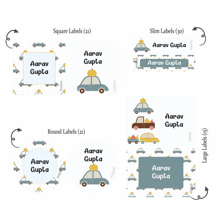 These labels are water proof and this combo packs comes with 4 different sizes which can be used as per requirement. These can be used on books, bottles , tiffin etc.