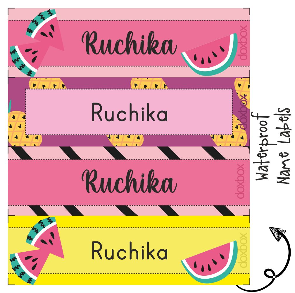 These labels can be used on your kids belongings including bottles and tiffin boxes. These labels are water proof. Let the label set for 24 hours after applying to set before exposing it to water.