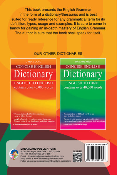 This book presents English Grammar in the form of a dictionary/thesaurus and its best suited for ready reference for any grammatical terms for its definition, types, usage, and examples. • 304 pages • Ideal for age-groups 9-13 years • Ample word entries • Ideal size to carry • Easy-to-understand language • Improves vocabulary • Corrects common errors in the English language It is sure to come in handy for gaining an in-depth mastery of English Grammar. The author is sure that the book shall speak for itself.