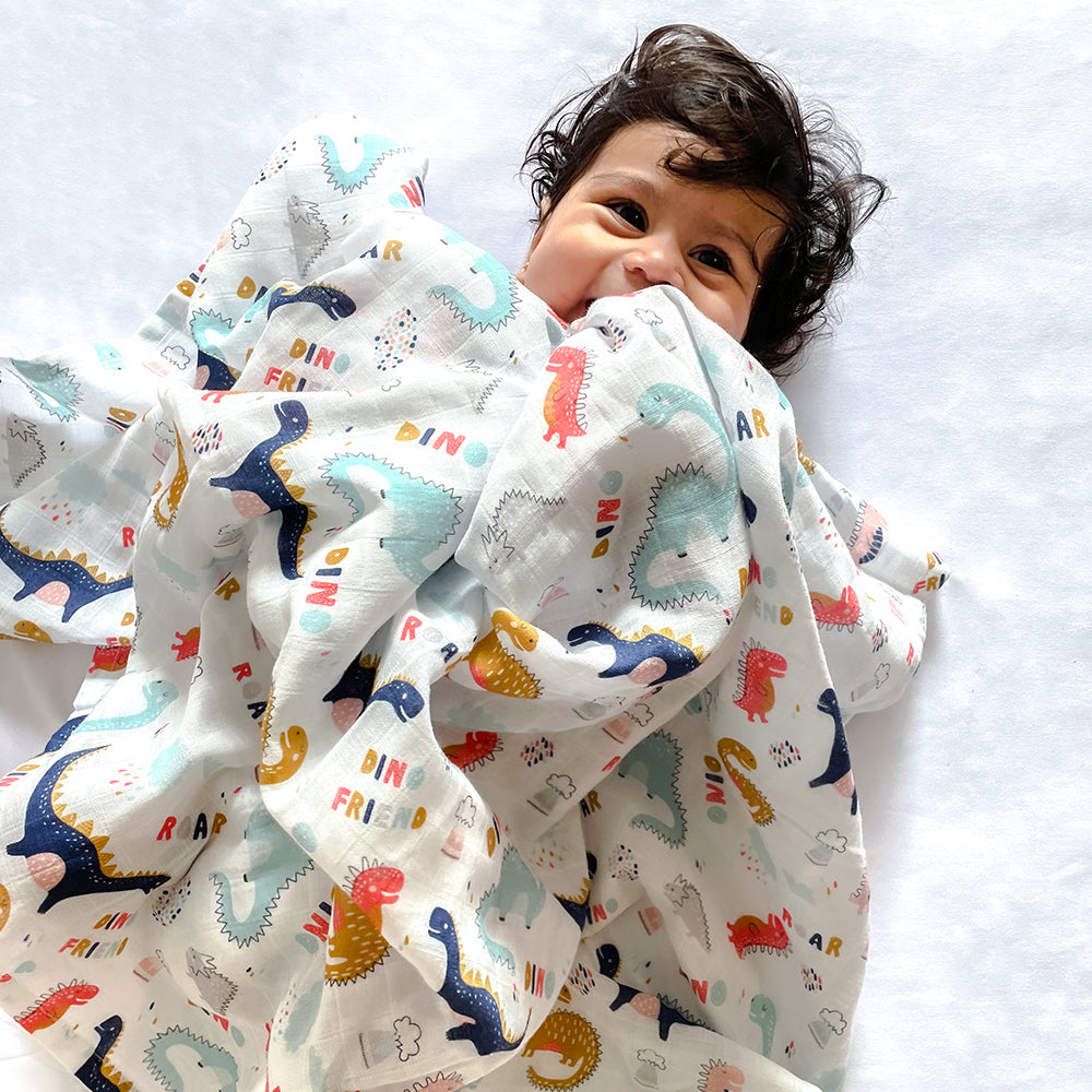 Dino Friend | Reversible Muslin Blanket