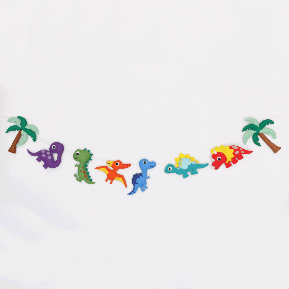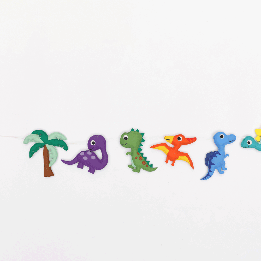 Our cute felt dinosaur themed Garland immediately sets the tone to your kidàroom dïr. These can be hung across walls or on cribs or the kids shelf or kids room door. Decorated with different colourful dinosaurs & trees, this bunting can make perfect addition to the kidàroom theme.