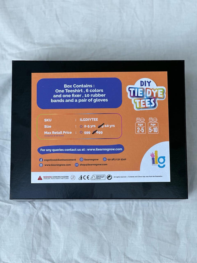 One Cotton tee , 6 colors , one fixer , gloves , rubberbands and an instruction manual