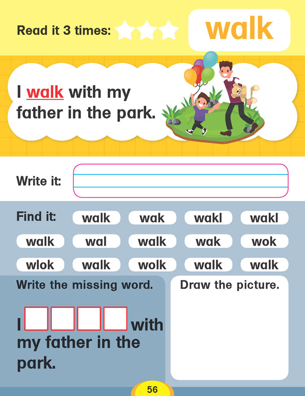 Dolch Words are words that are frequently used in the English language. Recognition of these words has an important role in the early phase of learning to read. ‘Dolch Sight Words’ this book aims to introduce children to the most commonly used words. • Perfect for ages 4+ • 64 pages • Enhance reading habits • Motivate learning • Interesting educational activities • Colourful pictorial presentation • Beautiful cover design This book featuring abundant basic but important words each adorned with colourful images will enrich kids’ knowledge greatly. Activities included in the book will help children read, say, and write each word, and then use it in a sentence.