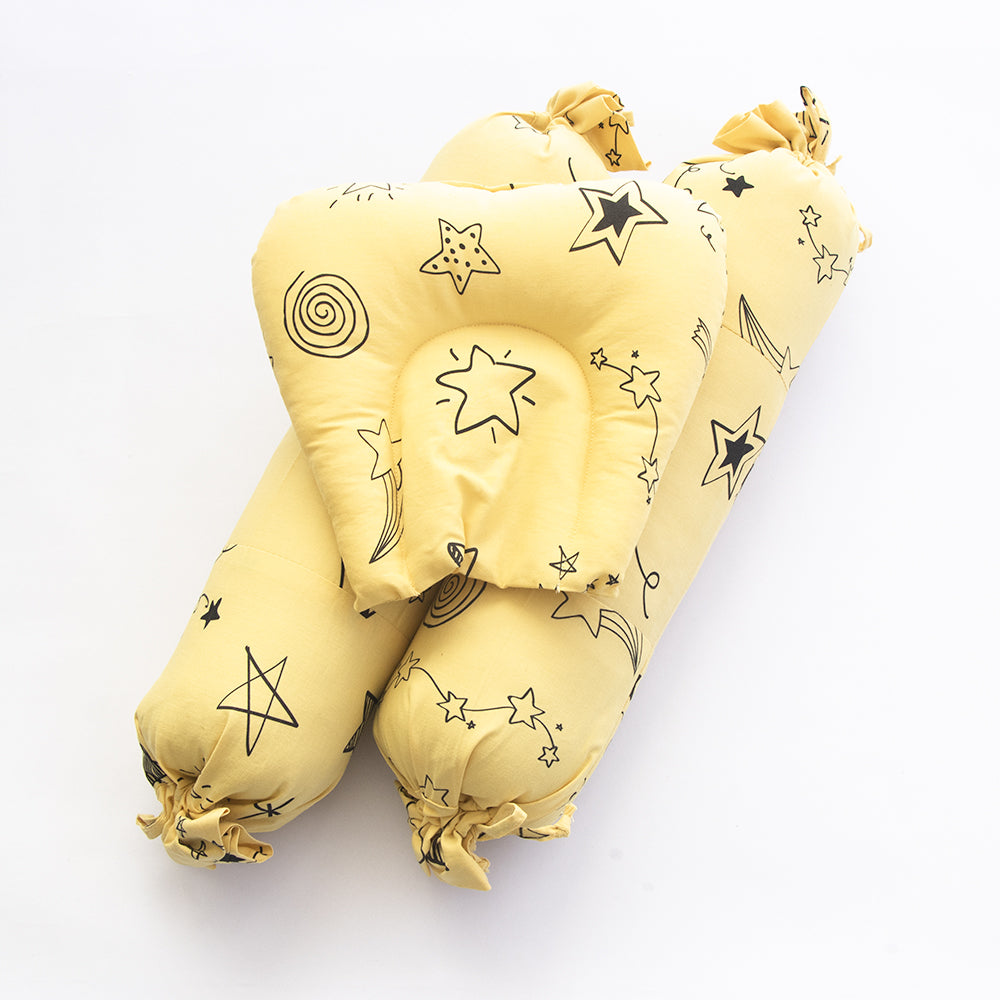 Soft, breathable & natural, Yellow Doodle Organic Cotton Bedsheet Set will encourage sweet zzZs for your little munchkin. This cot bed gift hamper includes a sheet, pillow and a pair of bolsters which are made from the finest certified organic cotton & is more durable and gentler on your baby’s tender skin. This bedding set is made from 100% GOTS certified premium organic cotton to create a smooth and soft finish and is also carefully crafted without harmful chemicals. Sized to fit standard crib and toddler mattresses, your baby will enjoy the softness of 100% premium organic cotton, so you both rest easy!