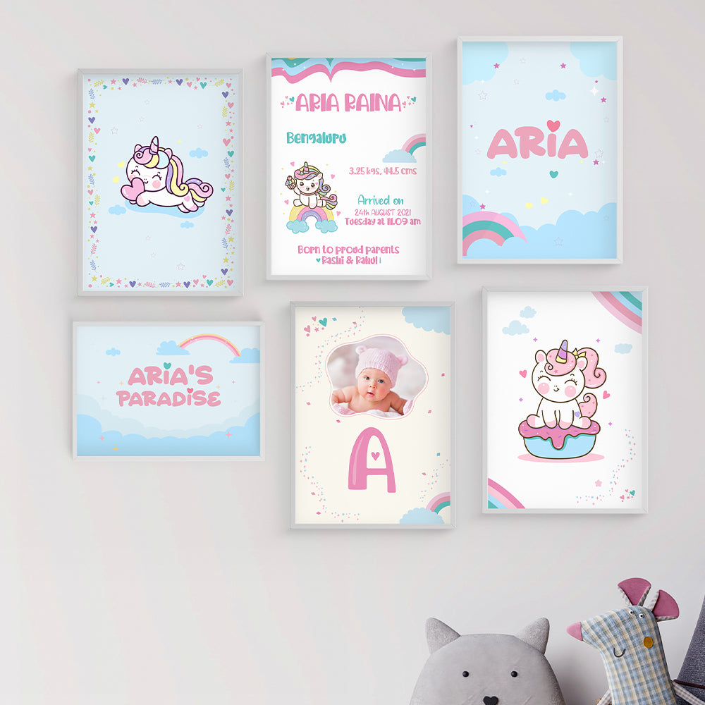 Yellow Doodle’s Wall Frames will be the perfect finishing touch to your little one’s room/ nursery decor. These personalised frames will make any wall look beautiful and unique.
