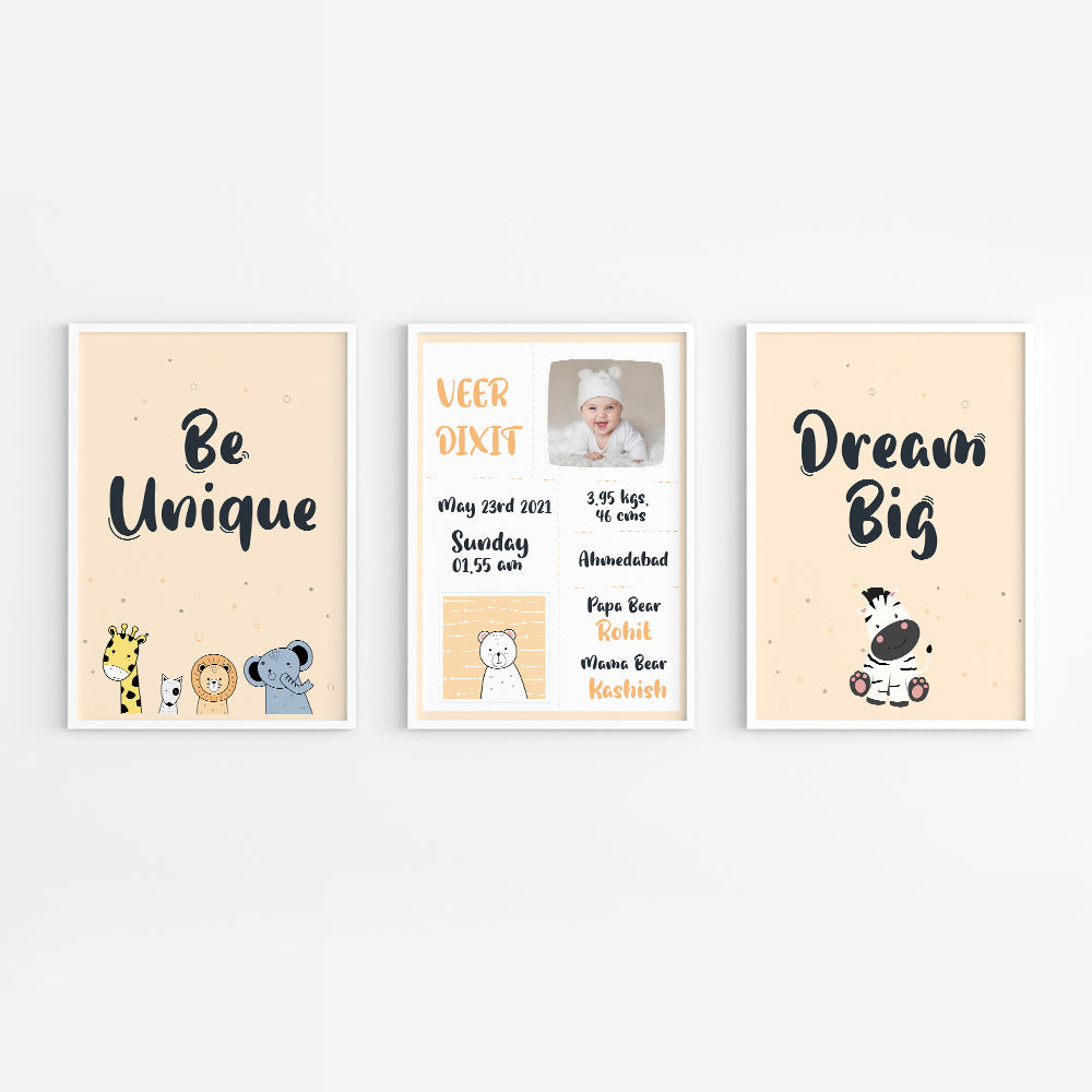 Yellow Doodle’s Wall Frames will be the perfect finishing touch to your little one’s room/ nursery decor. These personalised frames will make any wall look beautiful and unique.