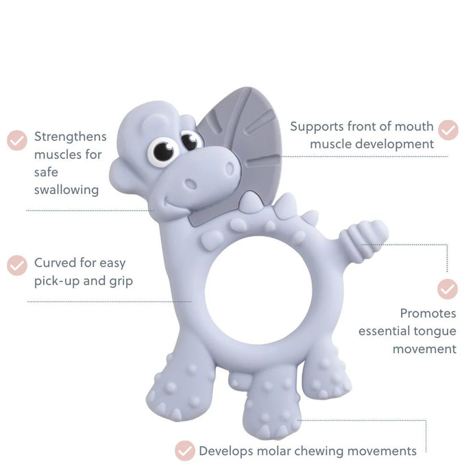 Dotty the Dinosaur is a Multi-Sensory Teether designed to strengthen and develop mouth muscles and help curious mouths unlock the secrets to biting and chewing.