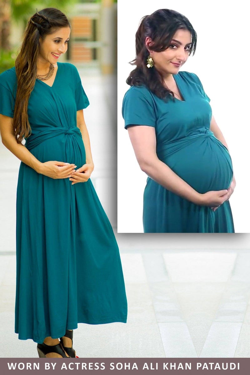 Emerald Front Knot Lycra Maternity Dress