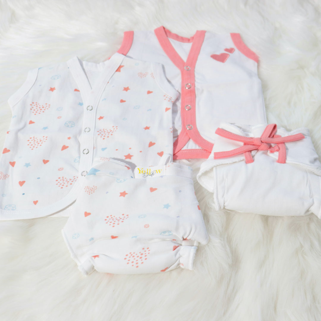 - Set of 2 Baby Vests (Jhablas) & 2 Nappies (Langots).