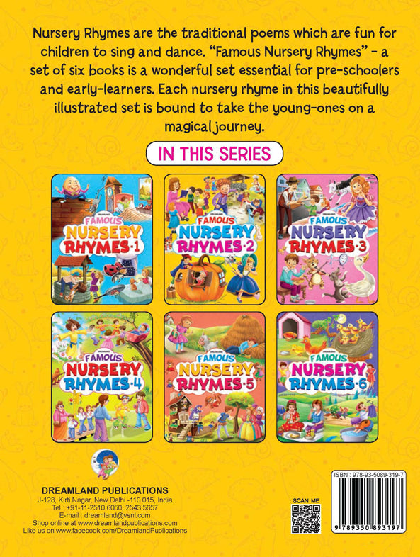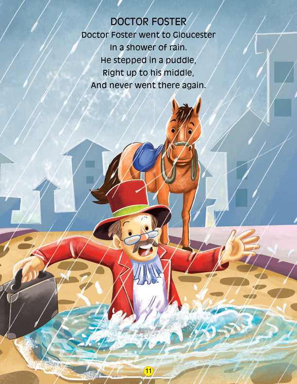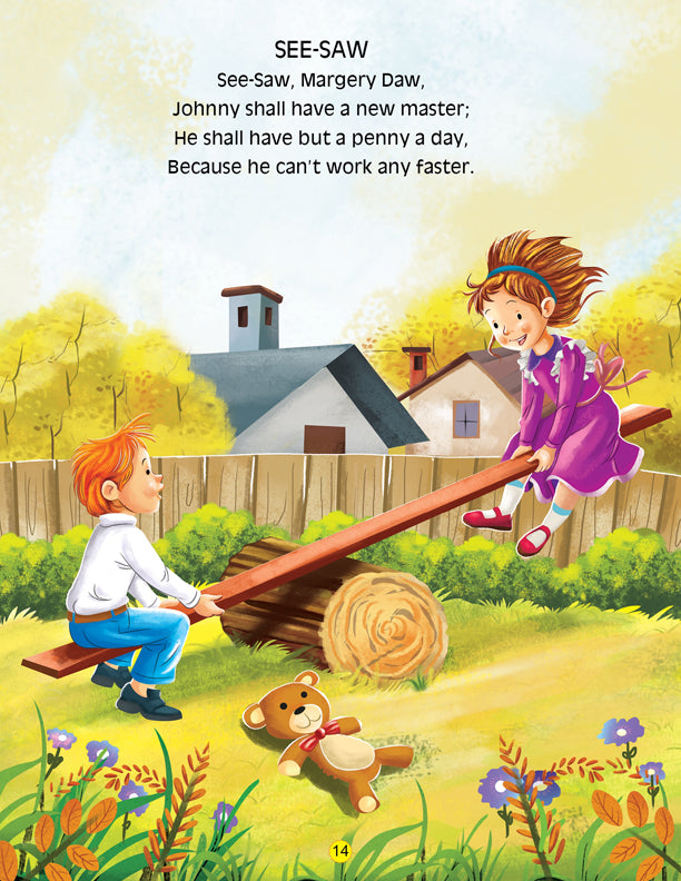 Nursery Rhymes are simple traditional songs or poems for children. These melodic small poems develop phonemic awareness, teach children to pronounce words, build their early vocabulary, and creative skills. ‘Famous Nursery Rhymes’ this book includes all-time favourite rhymes like Hickety, Pickety! Little Betty Blue, Jack and Jill, Three Blind Mice, and many more. • Ideal for age-group 6-8 • 16 pages • Ideal for primary school students • Cute cover design • Colourful presentation This charmingly illustrated book is perfect for creating memorable reading moments with young children. It will help kids start their reading journey and enjoy hours of singing and dancing with their friends, teachers, and parents.