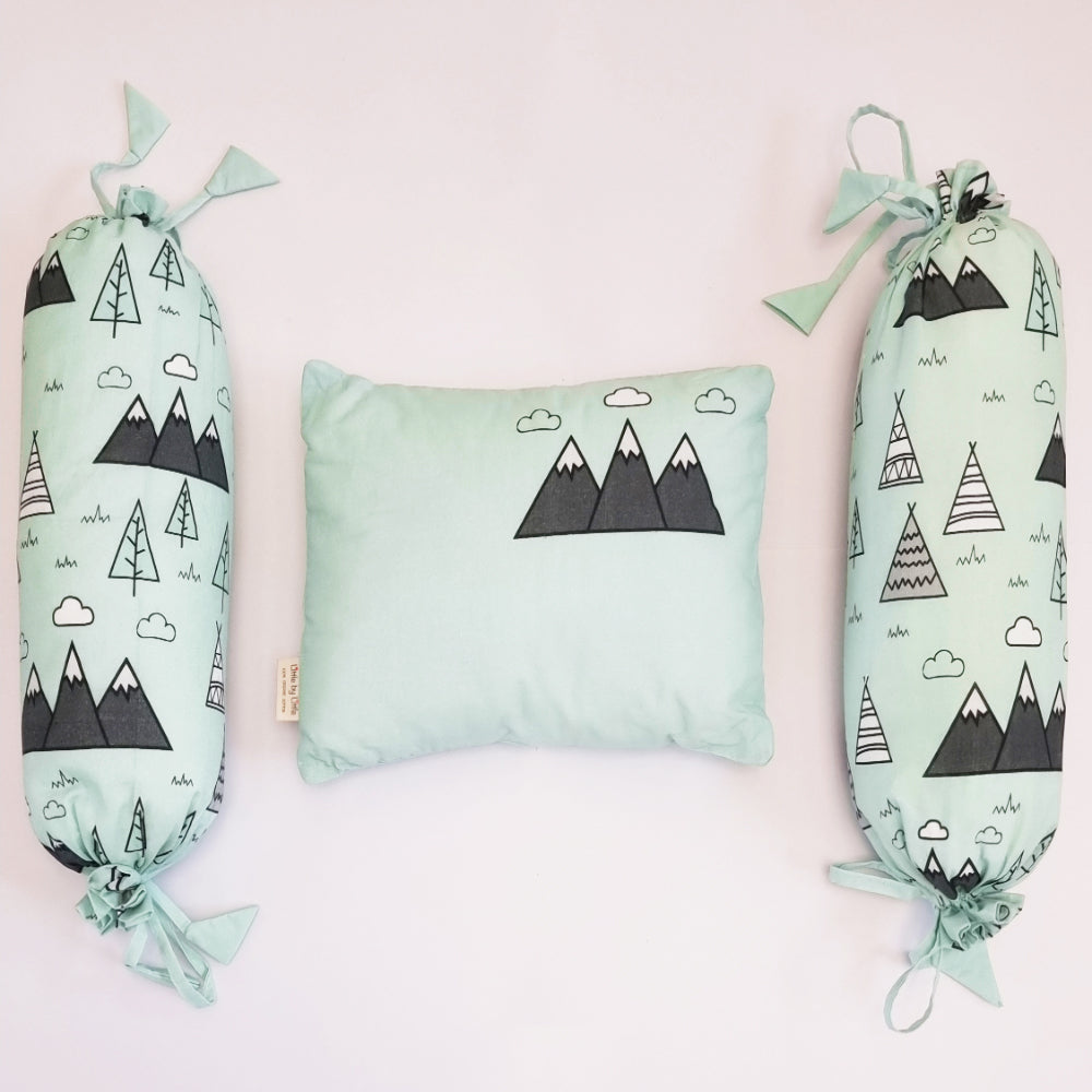 The comfort of the pillow and bolsters will give your baby peaceful sleep. Outer covers made from 100% organic cotton, they are very comfortable, soft to the skin and of perfect size with many prints which add style to your little one's nursery. The rai pillow having mustard seeds as a filler has a self adjusting nature which makes the pillow mold perfectly to the head shape and size to prevent flat head syndrome. The pillow bolster set can be used in the cot or can be carried any where. It is perfect for everyday use making it an ideal gift item. Size of Rai Pillow - 8"(W) by 12"(L) and size of each Bolster - 14" circumference by 18"(L)
