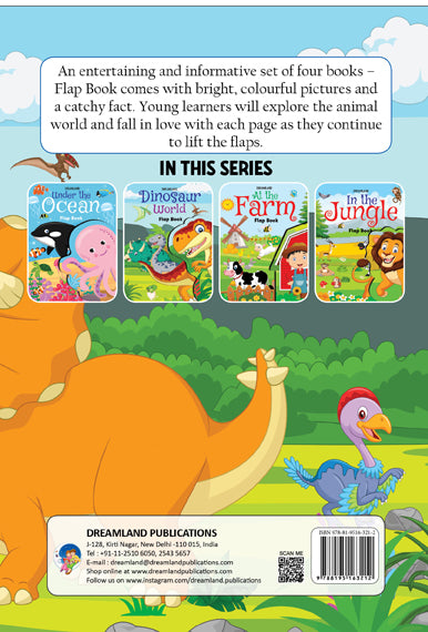 Dinosaurs were around millions of years ago! They were the largest creatures on the earth. Explore the incredible ‘Dinosaur World’ through this flap book and know the names and facts about these amazing creatures. • Ideal for age-group 3-6 • 10 colourful pages • Fascinating facts • Lovely images • Adorable cover design • Colourful presentation Designed to enhance curious little learners’ reading experience and build an early learning foundation, this book makes a wonderful gift. Delve into the fast facts about dinosaurs and discover the ones with a long neck and a long tail, with strong spikes, a crested dinosaur, and many more!