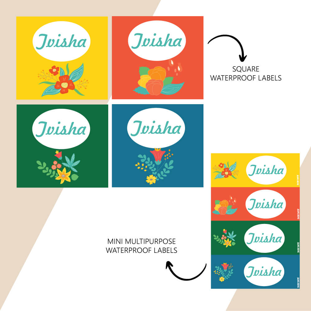 For all your labelling needs from bottles, tiffins to everything big and small we have you covered! The new combo set comes with two sticker sizes, that will have all your kids items labeled and ready for school! And the added bonus they are all WATERPROOF!