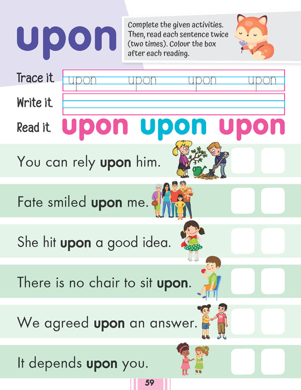 Fluency words are those necessary words that are commonly used in the English language. ‘Fluency Sentences’ is a book aiming to teach kids to learn to read, write and then put the fluently used words into simple sentences. This book will serve as a great reading foundation for children. • Ideal for ages 4-7 years • Pages 64 • Colourful presentation • Educative and entertaining • Building block for reading success • Lots of engaging activities • Strong foundation for literacy • Cute cover design This educative and entertaining book will help kids improve their vocabulary, language skills and become efficient readers. It will make kids trace, write, and read each word, then use it in a sentence to help them enhance their language skills. It will help children strengthen their spelling skills while developing their recognising common words skills by accurately using them in sentences.