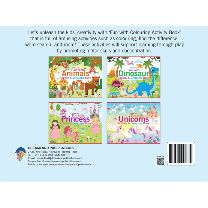 Let’s unleash the kids’ creativity with ‘Fun with Activity & Colouring Book’ that is full of amusing activities such as colouring, find the difference, word search, and more! These activities will support learning through play by promoting motor skills and concentration.