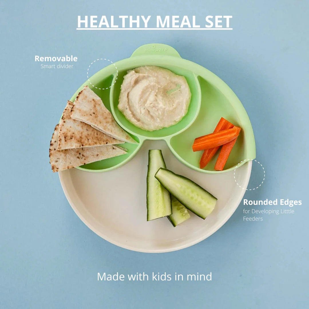 Healthy Meal Suction Plate with Dividers Set | Vanilla/Key Lime