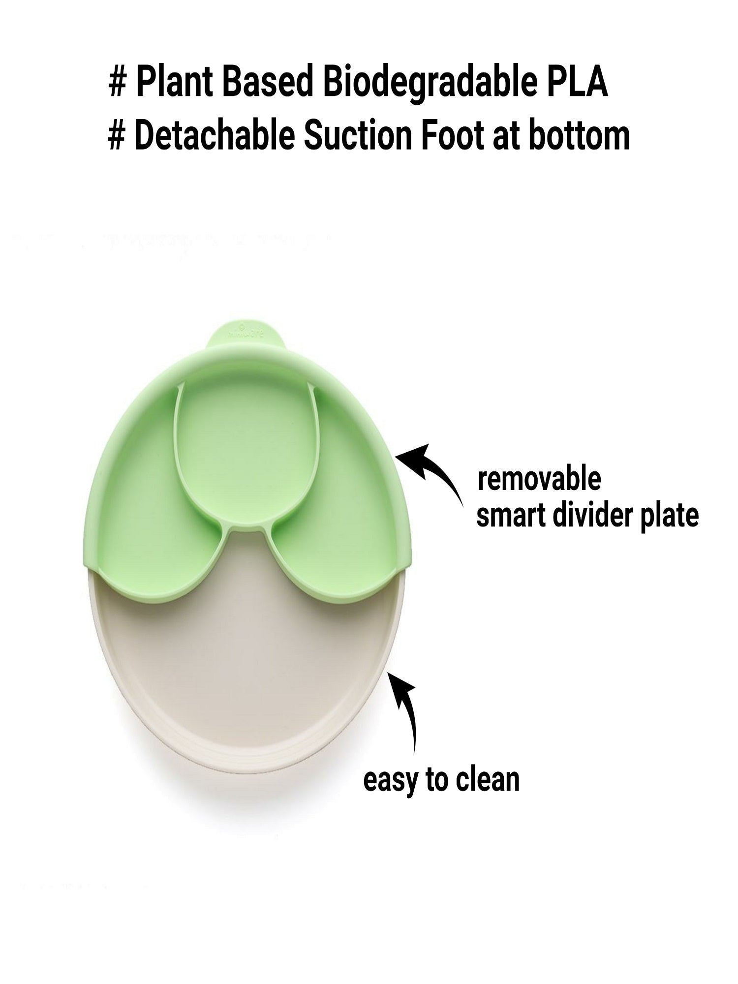 Healthy Meal Set Includes: 1 x Cassava PLA Sandwich Plate, 1 x removable Silicone Divider, 1 x smart detachable Suction Foot with airtight seal, to help keep messy foods in place.