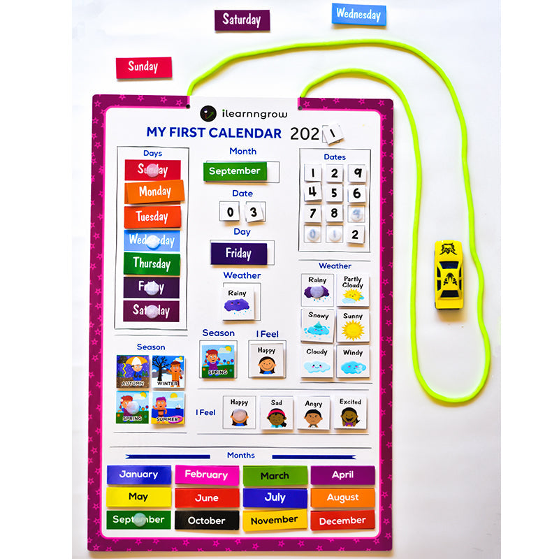 Day Date Month and Moods , Knowing how to acknowledge these basics in life is extremely important for holistic development of a child.Children can daily change the following factors:- Day -Date-Month - Season - Weather - Feelings.Make it a routine habit for Kids to change The Date, The Day and Weather, How they feel etc.