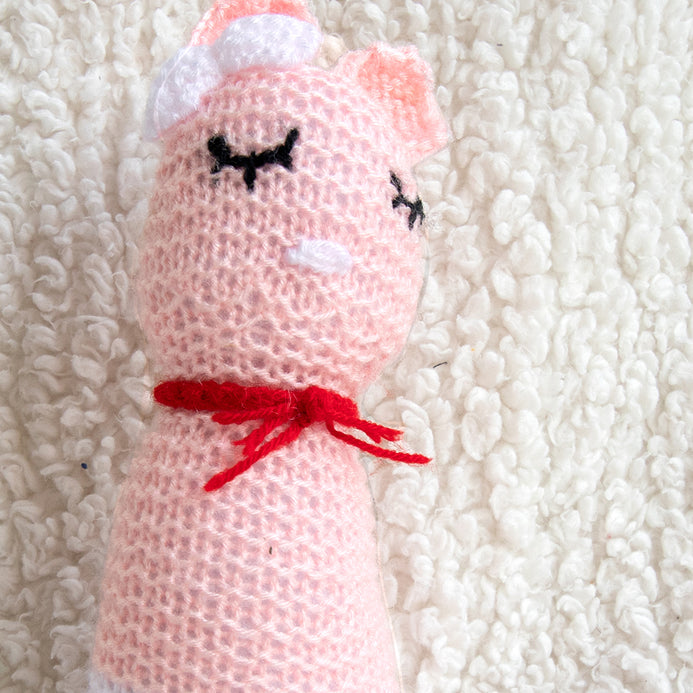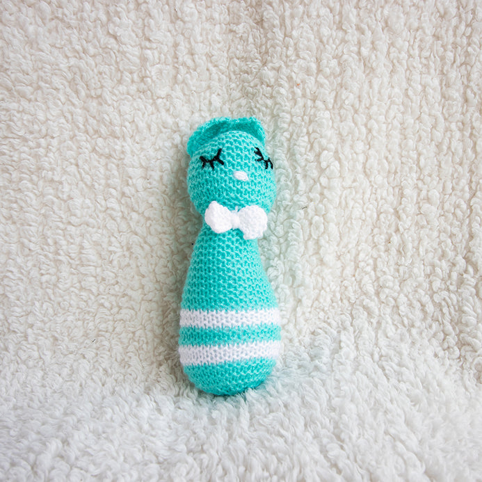 - SIZE & MAKE- Set of three adorable soft toys, hand-knitted from premium baby wool, Integrated rattle sounds. 19 cm length (approx.) each. Handmade with care in India.