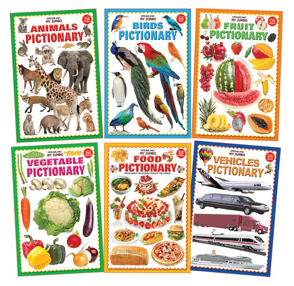 Dreamland My Jumbo Pictionary Series - (6 Titles) printed in whimsical jumbo size on fine paper. Each page combined with bright, colourful picture so a young child would enjoy book words and pictures. Just an amazing astounding for early learners.