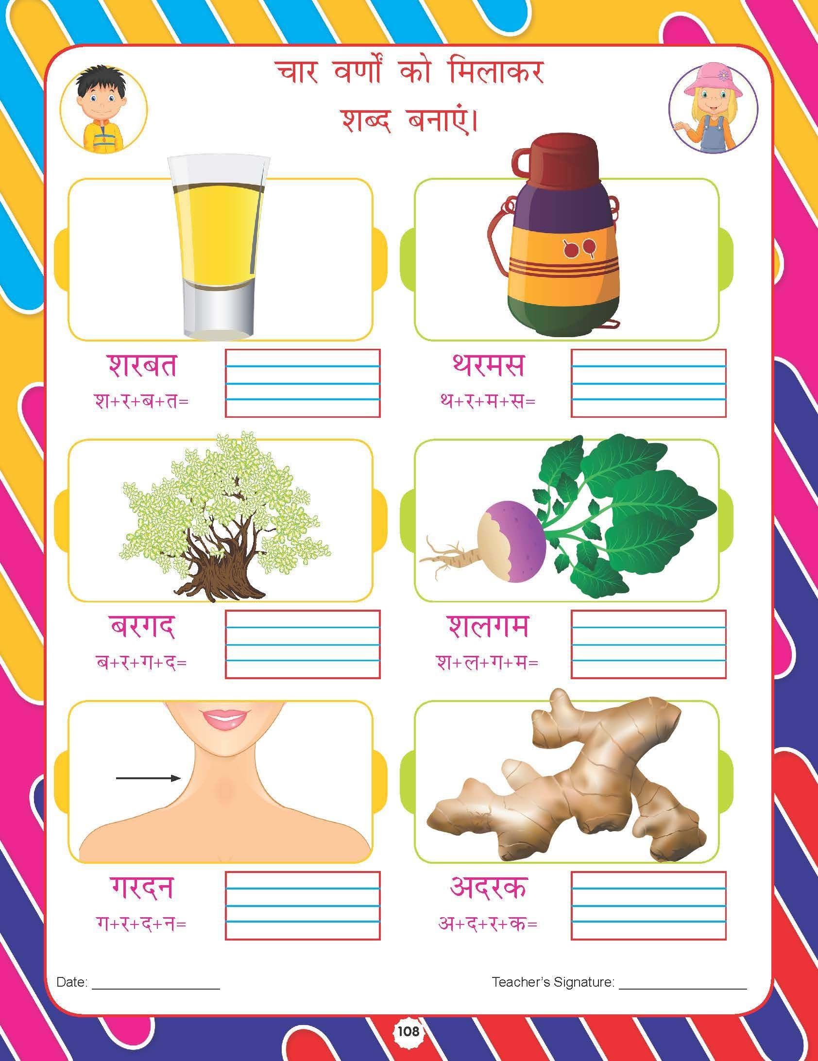 ‘Kindergarten Hindi Workbook’ is a great resource for young learners to learn their first language lessons. It includes a practice that assists kids to become proficient in recognising Hindi Varnamala, building words, picture-word association, spellings, and more. It can deepen children’s writing impression, stimulate interest in learning, and increase memory. • Ideal for ages 2-5 • 120 practice pages • Colourful presentation This book is a complement to the academic syllabus. Beginner learners will find this book very useful as they learn various lessons through hands-on activities. It will improve writing skills and gain confidence as kids improve their pencil holding grip and hand-eye coordination.