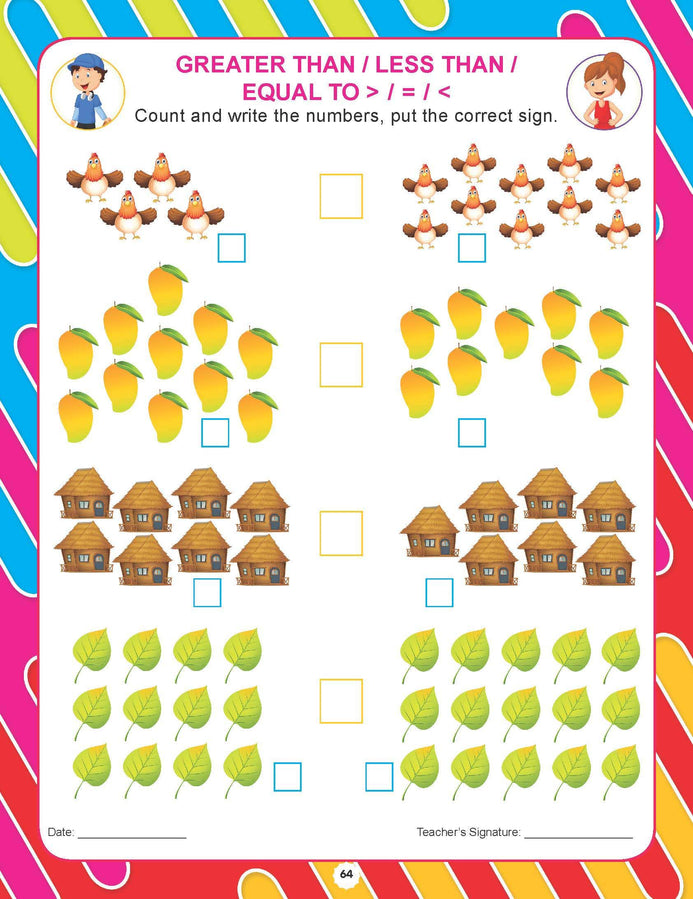 Math is the study of numbers. Its connections to everything help kids learn, understand, and think more deeply about the world. ‘Kindergarten Maths Workbook’ helps to enable early learners to develop an understanding of numbers, counting, addition, subtraction, more than, less than, and many more associated topics • Ideal for ages 2-5 • 112 practice pages • Colourful presentation This book is a complement to the academic syllabus. Beginner learners will find this book very useful as they learn various lessons through hands-on activities. It will help children do simple addition and subtraction to sorting and identifying numbers and build their fundamental math skills.