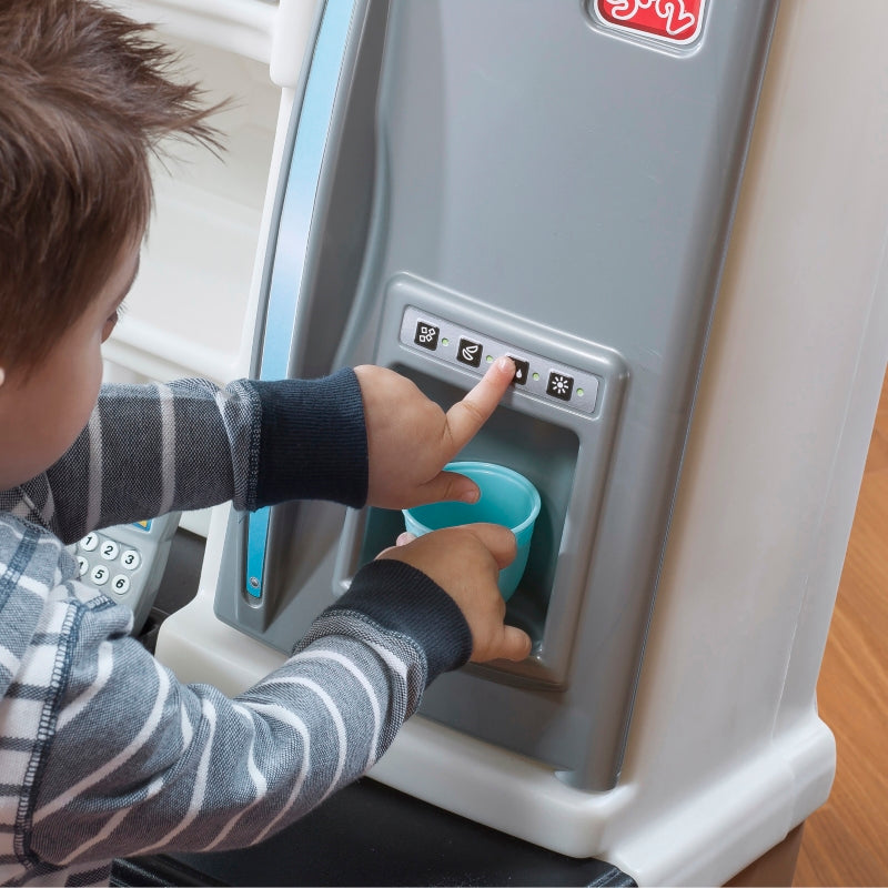 - Get cooking with the pretend appliances including the stovetop, oven with clickable knobs, microwave with working keypad, and refrigerator with water station to keep pretend ingredients fresh.