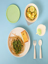 Miniware Little Foodie All-in-one Feeding Set Plan provides the perfect start for minis new to self-feeding. Made from durable materials, with detachable suction-foot, silicone accessories and unique easy-scoop angles, Little Foodie is created to help kids learn essential skills while reducing accidents and spills. The waterproof lid seals securely to our cereal bowl, making it ideal for transporting messy foods or storing leftovers. Perfect both as a gift or for your own messy minis! It’s made with 100% natural plant based ingredient which not only guarantees your baby's well-being, but also protects the environment.