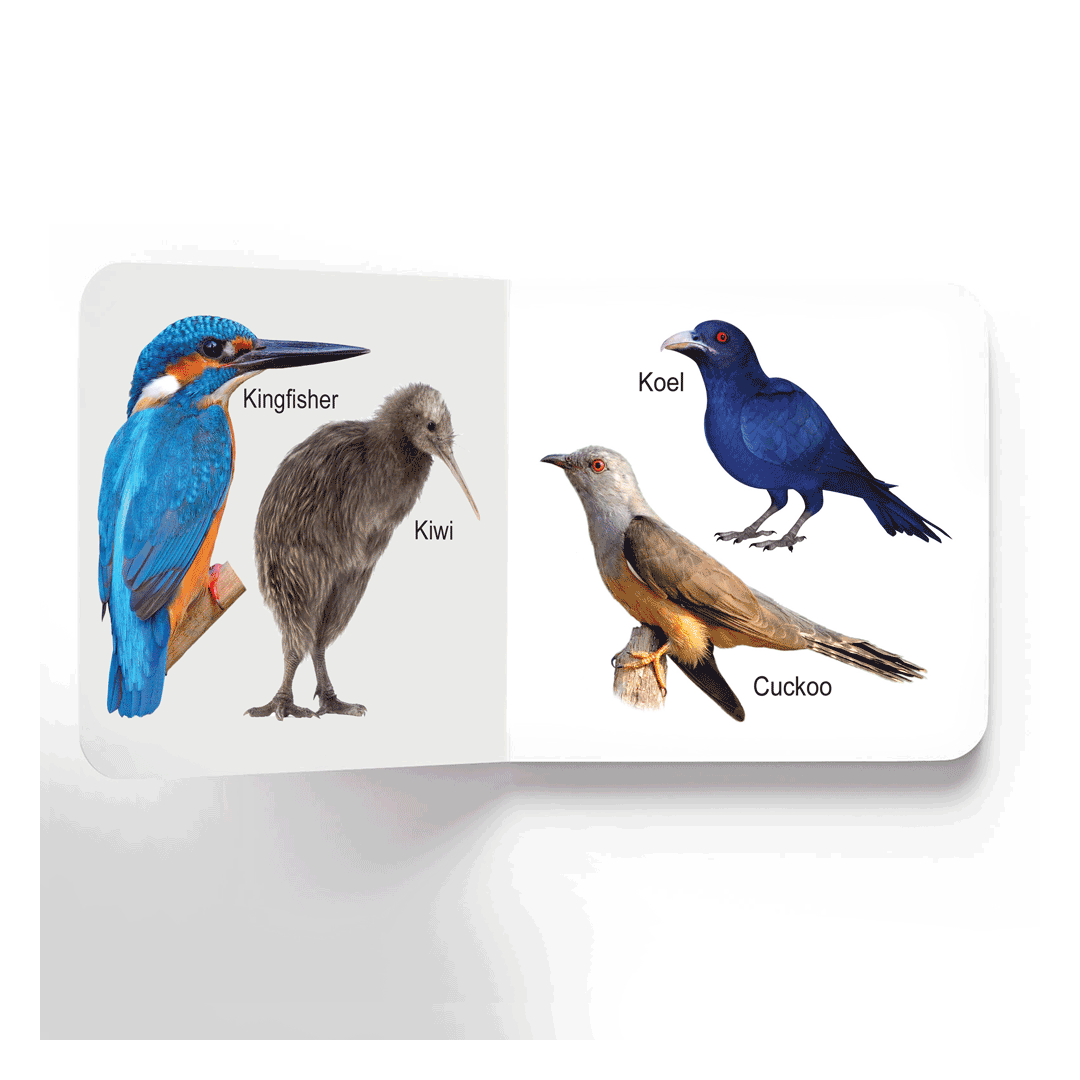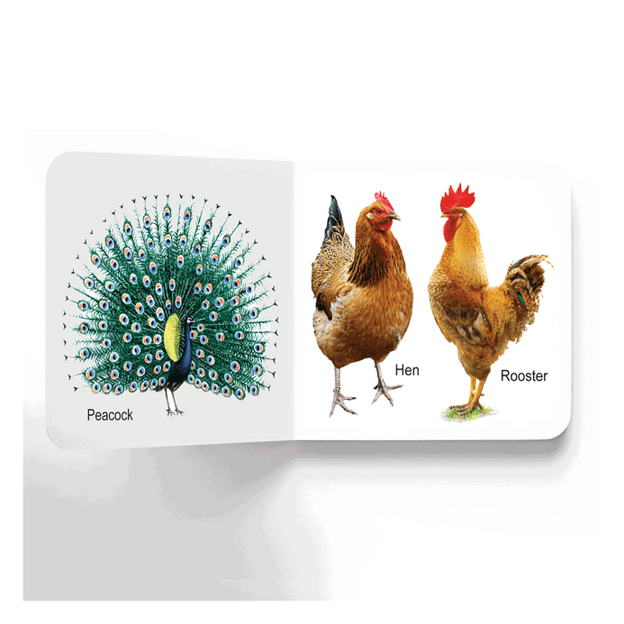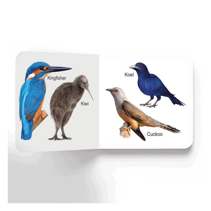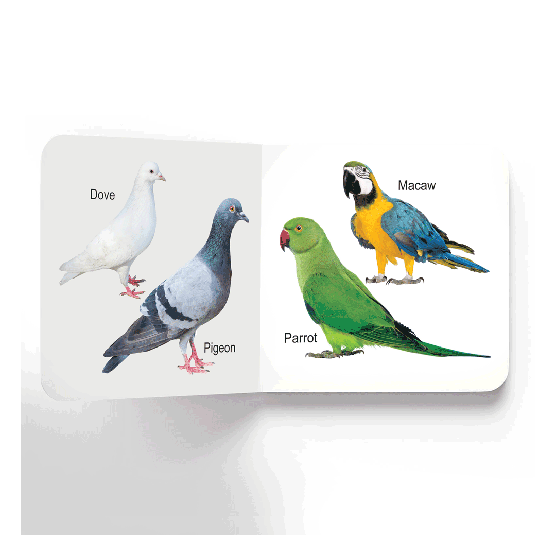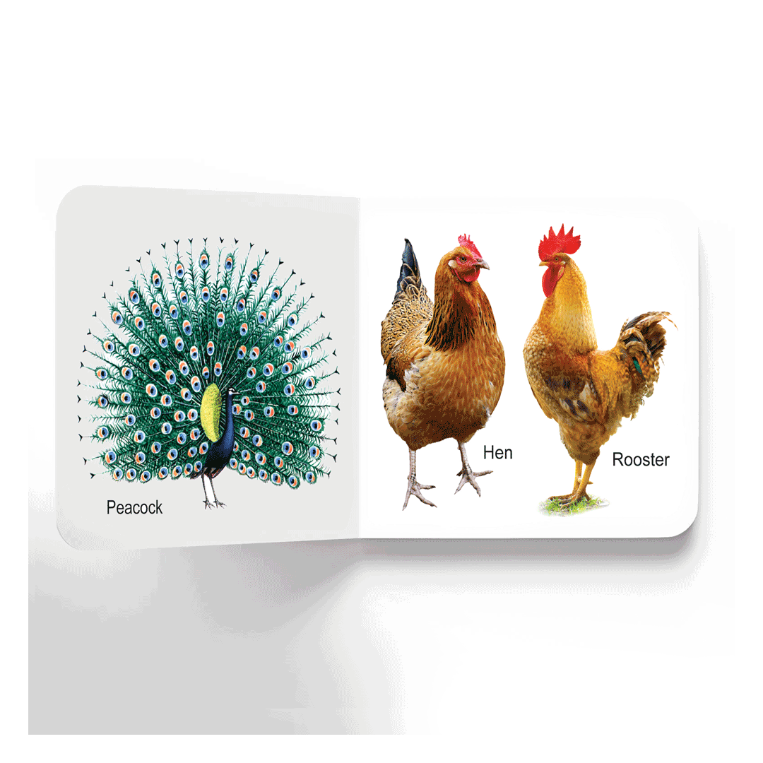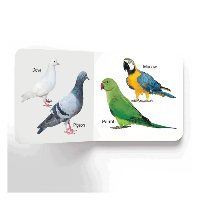 This pleasant board book is packed with lovely and some strange birds to attract the attention of early learners. Each page of this book introduces toddlers to cute colourful birds. • Perfect for ages 0-2 • Vibrant pictures • Ideal-size for little hands • Glittering cover design • Rounded corners • Good quality board This delightful book is perfect for little hands to hold and helps them enhance their learning curiosity. Tiny tots will love turning the pages of this cute little book, again and again!