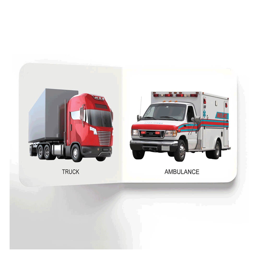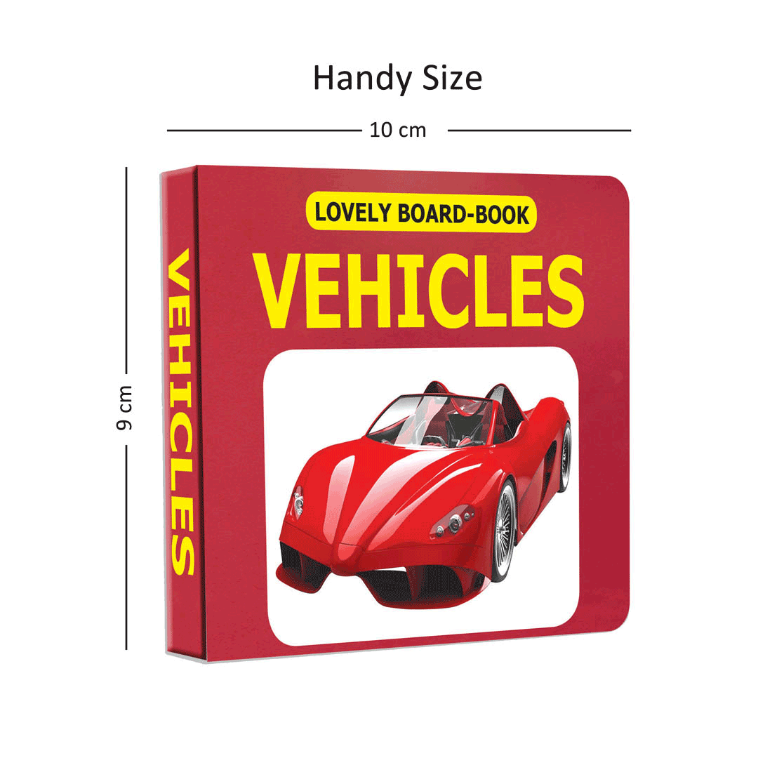 ‘Lovely Board Book – Vehicles’ is full of adorable images that introduce tiny tots to the mode of transports around them. Each image labelled with words will help little learners recognise the vehicles and also help them learn their names. • Ideal for age-group 0-2 years • Bright and colourful images • Attractive cover • Perfect size for little hands Reading this book to babies is a wonderful way to develop their vocabulary. It will help their visual recognition and sensory skills. ?