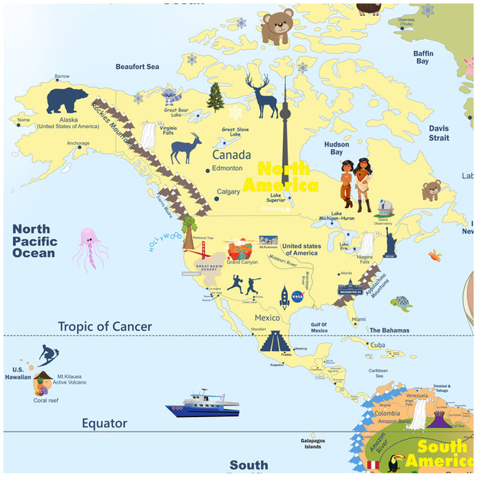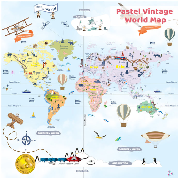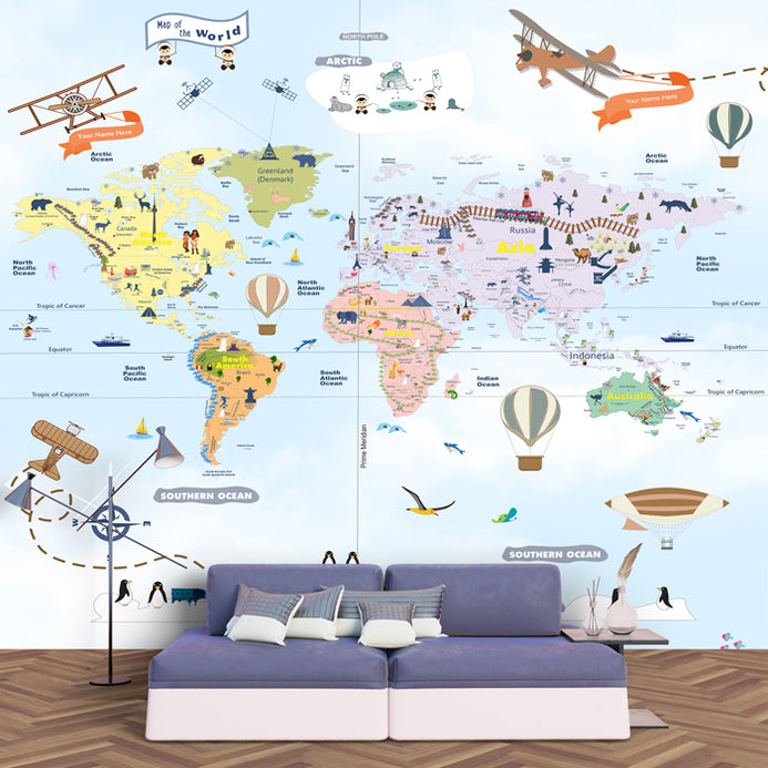 Infuse new tones and interesting designs to your walls with this neutral-toned Pastel Vintage World Map Wallpaper. This kids’ world map wall sticker is alive with animals, people, ships, and sea monsters, as well as geographical elements that inform us of the world’s surroundings. The pastel style is perfect for children’s bedroom or playroom, and the soft and warm hue of colors work well with various color schemes.