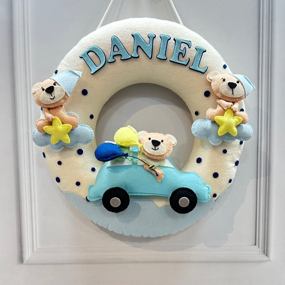 Personalised Name Hanging | Teddy on a Car