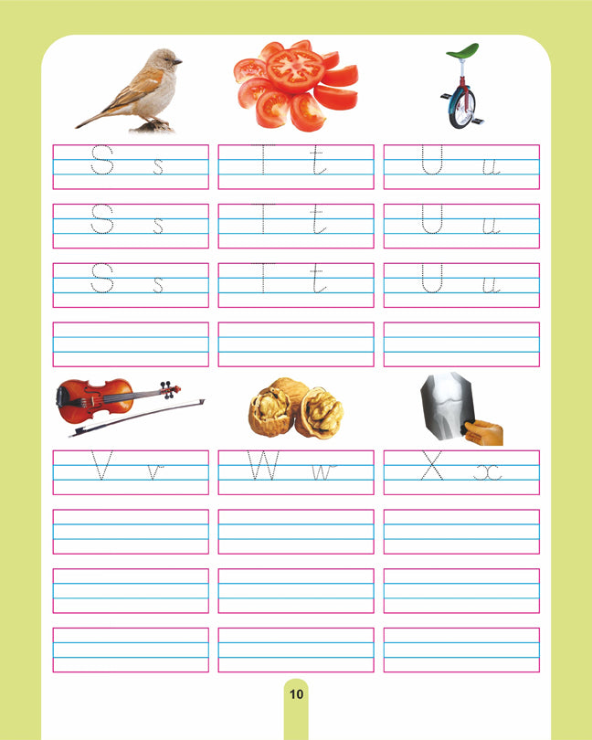 ‘Pattern Writing’ is a must-have for beginner writers to help them strengthen their penmanship. Filled with easy-to-understand words, this book includes trace and then copy each letter of the alphabet in upper and lowercase until children master themselves in writing skills. • Perfect for ages 2-6 • 32 pages • Interesting words • Easy-to-read format • Colourful presentation • Nice cover design Support of vibrant and colourful images makes it easy for early learners to understand the meaning of each word. This book will gently guide children to confidently write and strengthen their handwriting skills.