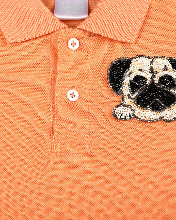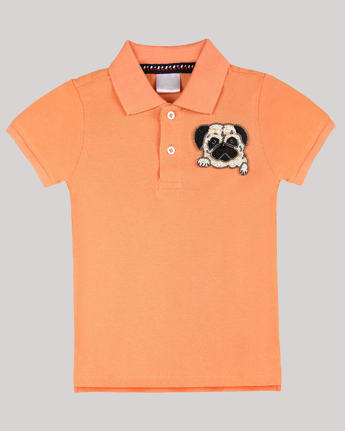 This Wear - With - Anything Polo T - Shirt Is A Great Combination Of Style And Comfort For Your Little One'S Chic Outings . It Has A Hand - Embellished Pug Face Motif Which Will Make Him The Trendsetter Amongst His Peers!